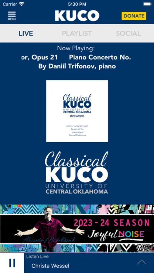 The brand new custom designed Classical KUCO App allows you to enjoy “Oklahoma’s Choice for Classical Music” in an entirely new and convenient way. Now you can take our local and live hours with your favorite hosts and the music you enjoy, Exploring Music, The Score and all of your favorite programs with you wherever you go! Here are just a few of the many features of our new app: