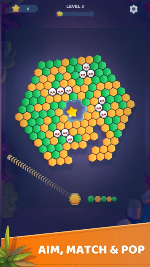 -To pass each level, shoot at & stack bubble tiles of the same color to pop them. Pop all the bubble tiles and break the glass in the center to collect all 3 stars.