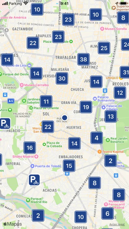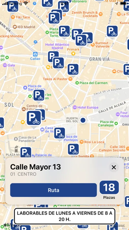 Find the perfect spot to legally park your motorbike in downtown Madrid.