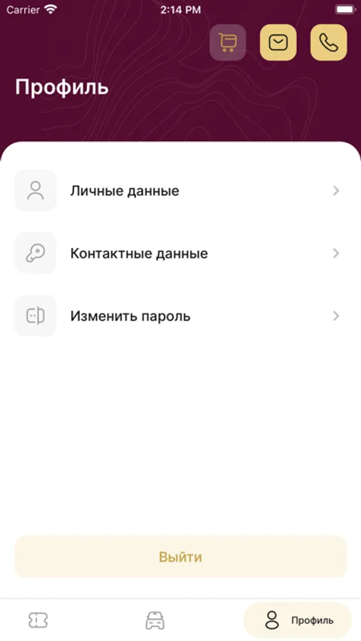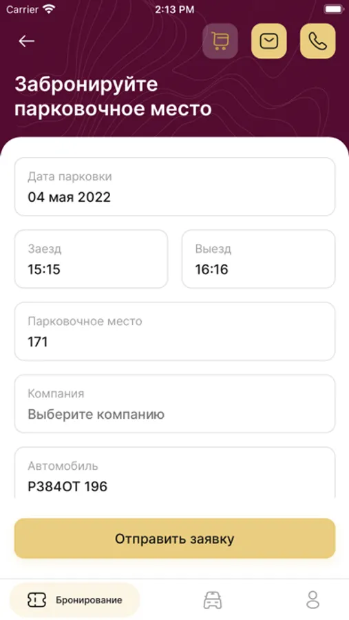 Приложение для бронирования парковки, заказа еды и отправки заявок в техподдержку.