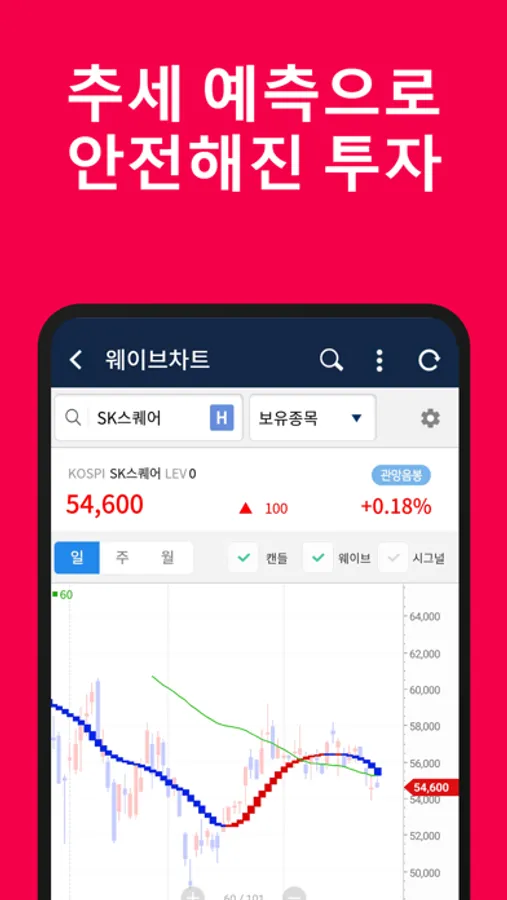 - 예측 가격과 캔들이 나오기 때문에, 추격 충동 매매없이 매일 안정적인 수익을 목표로 할 수 있습니다.