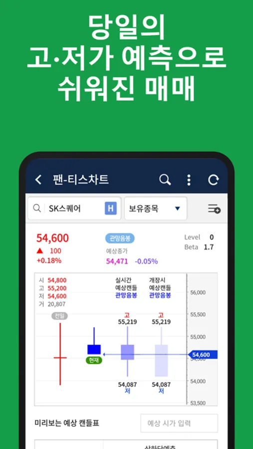 - 개장 전에, 예상 시가를 통해 고 · 저가를 예측할 수 있습니다. 미리 매매를 걸어두어, 유리한 가격을 선점할 수 있습니다.