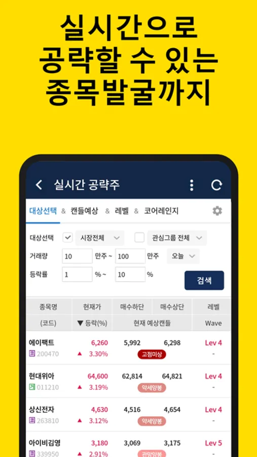 - 강력한 Trend 검색 기능을 지원하고 있어, 추세에 있는 종목을 발굴할 수 있습니다.