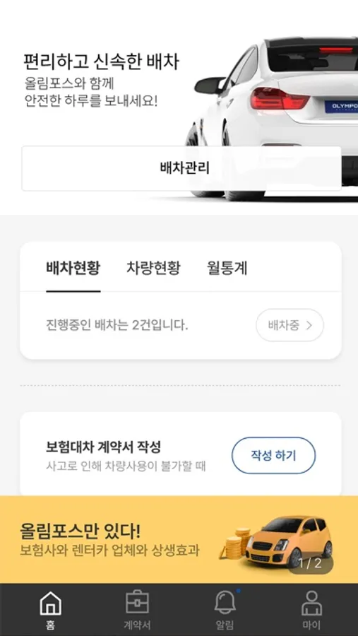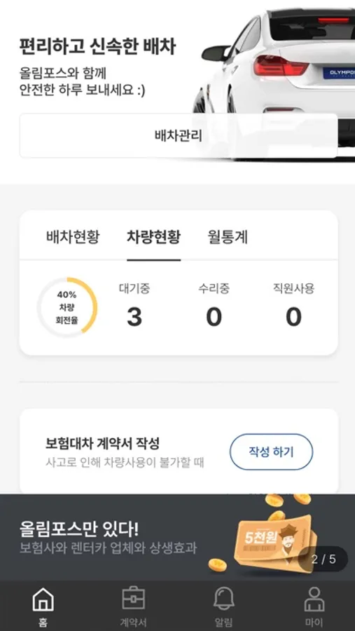 렌터카 사업자를 위한 최적의 Platform, olympos. 보험대차 계약서 작성 보험사 청구까지 한번에 가능한 모바일 전산 Platform