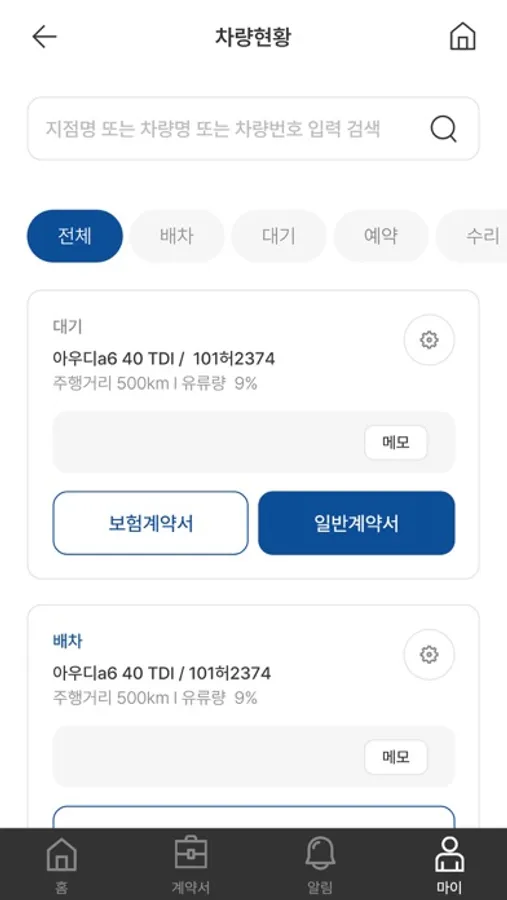 - 외근할 때 할 수 없었던 보험대차 청구를 3번 터치로 발송합니다.