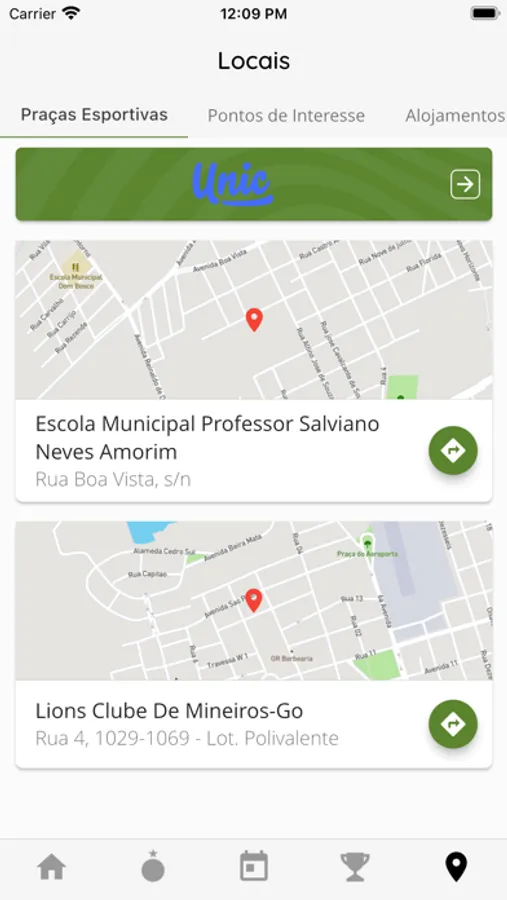 - Obter informações dos locais dos jogos, bem como a direção para eles (e integração com apps de transporte)