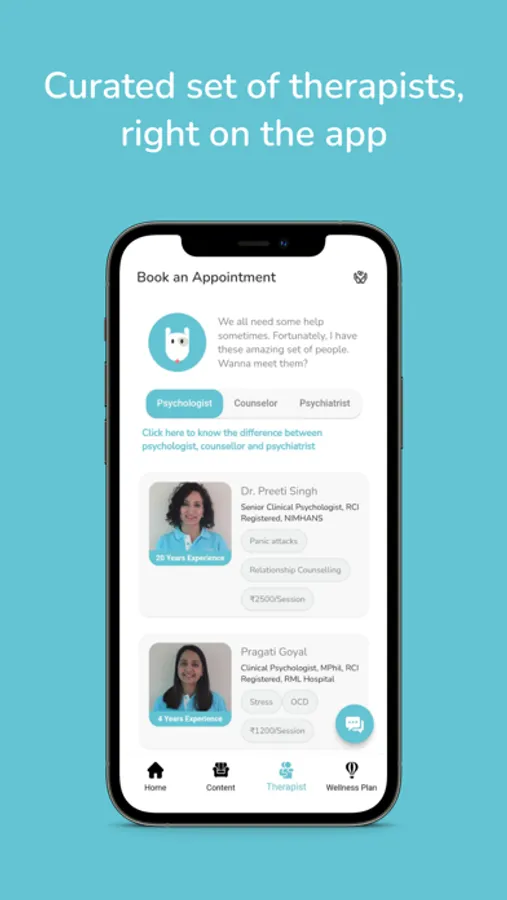 Practitioner : Get all the professional expertise that you need and the support that you deserve. Get matched with a mental health professional who is best suited to help you. All the therapists who are part of the Lissun universe are highly qualified, have real-life experience, and have proven track records (Emo insists on it). We’ve always got your back.