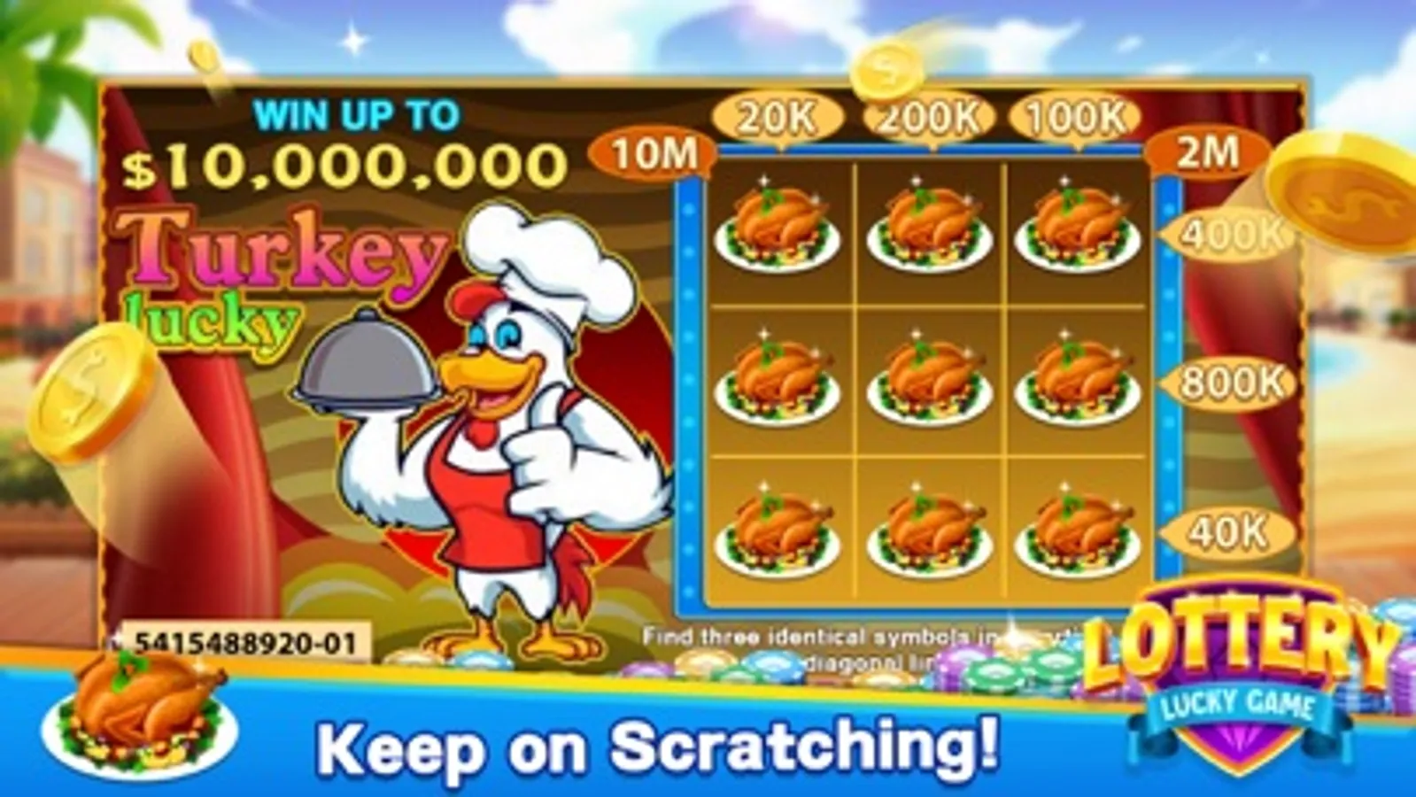 - Many types of scratch off games and scratcher cards: Money Rain,Fortune Galore,Diamond Millions, Big Time Bucks, Lucky 777,Double Dollar, Gold Strike, and more!
