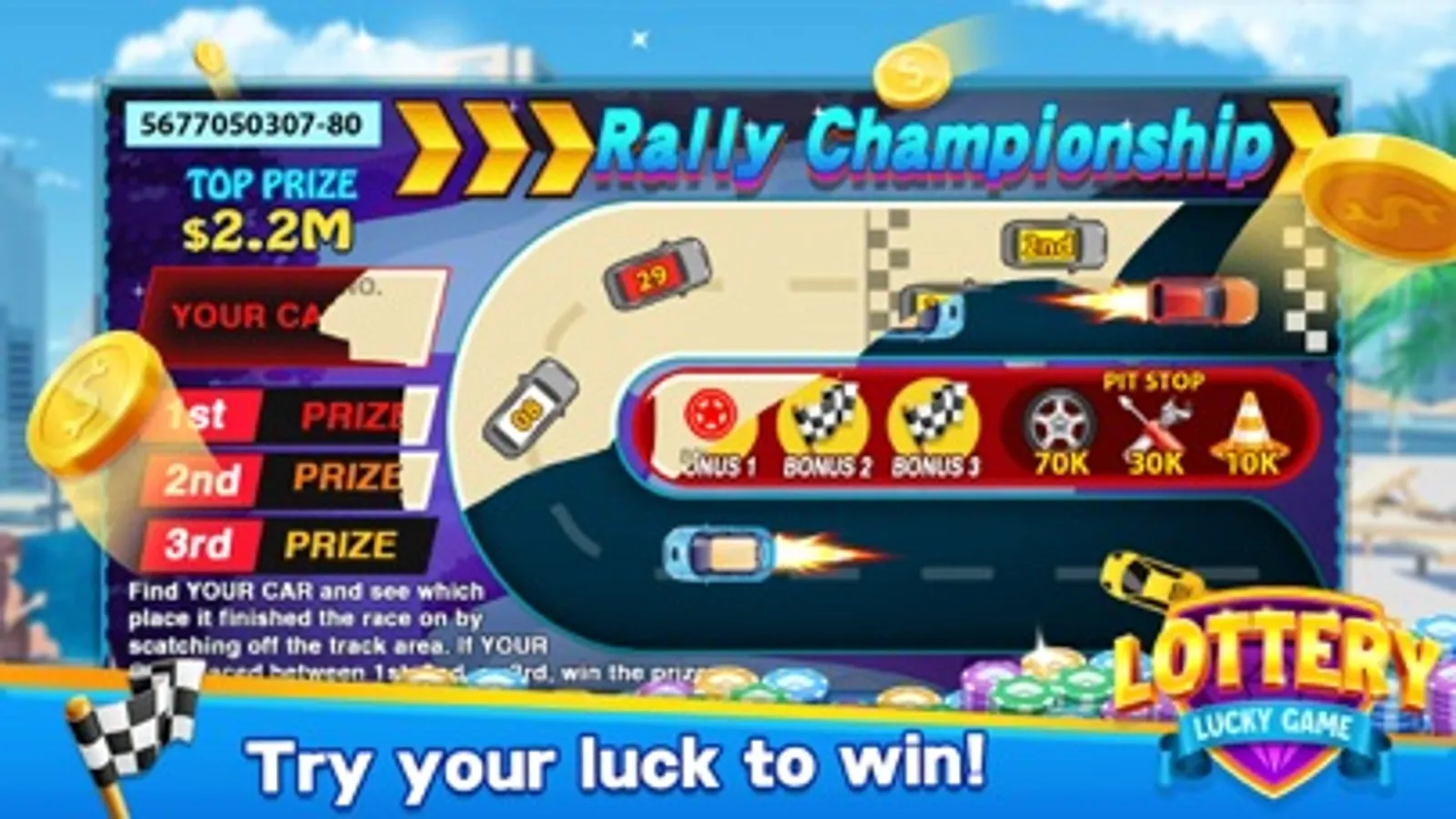 Use your finger to scratch card surface to match winning numbers to your numbers, or to reveal lotto bonus game. There are hundreds of game levels to play and this lotto is designed to work with phones and tablets.