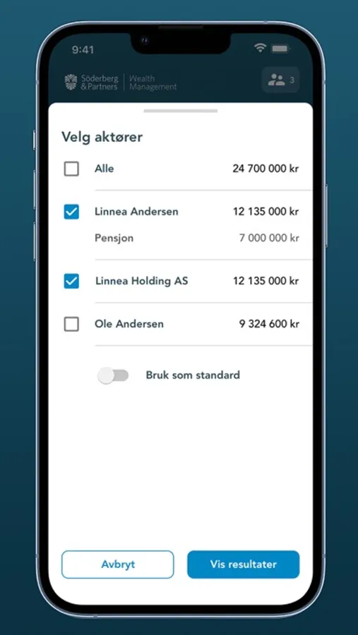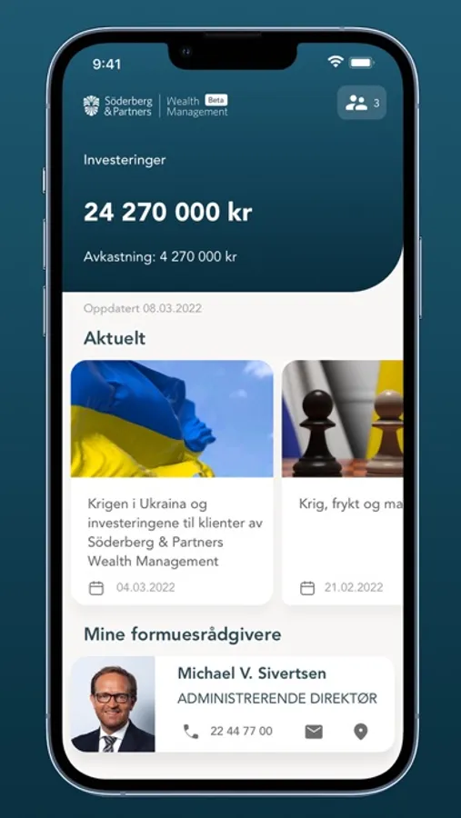 I appen Söderberg & Partners WM får du full oversikt over dine investeringer, og alle øvrige porteføljer du har eventuell innsynsrett i.