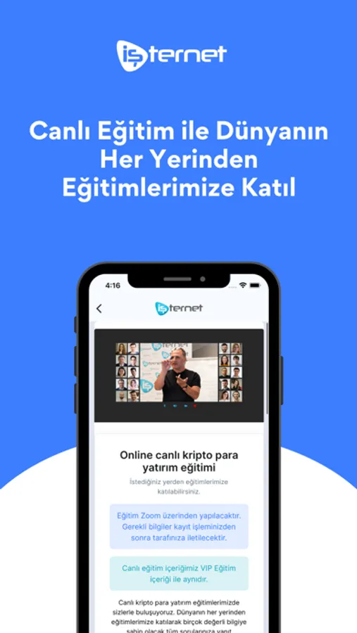 Çevrimiçi video eğitimlerinin yanı sıra VIP sınıflarda yüz yüze kripto para eğitimleriyle öğrencilerin bilgi birikimlerini ve tecrübelerini zirveye çıkarmayı kendisine misyon edinmiş İşternet senin de şehrine gelebilir.