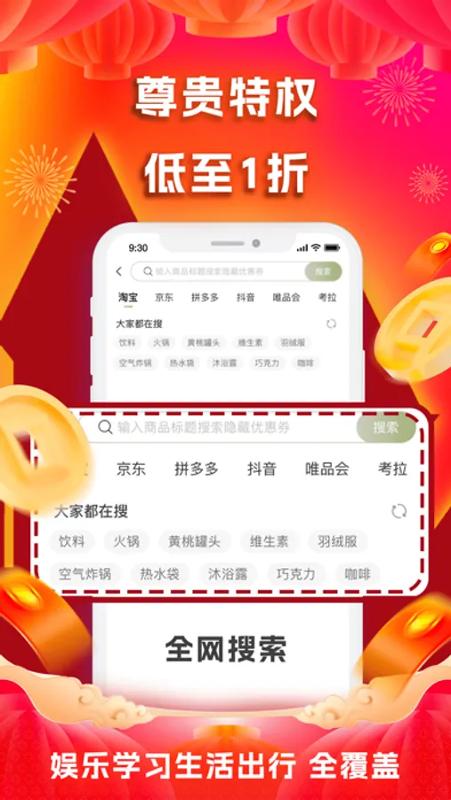 全网知名电商、大牌海量优惠券随时领,一件领券,自用省钱
