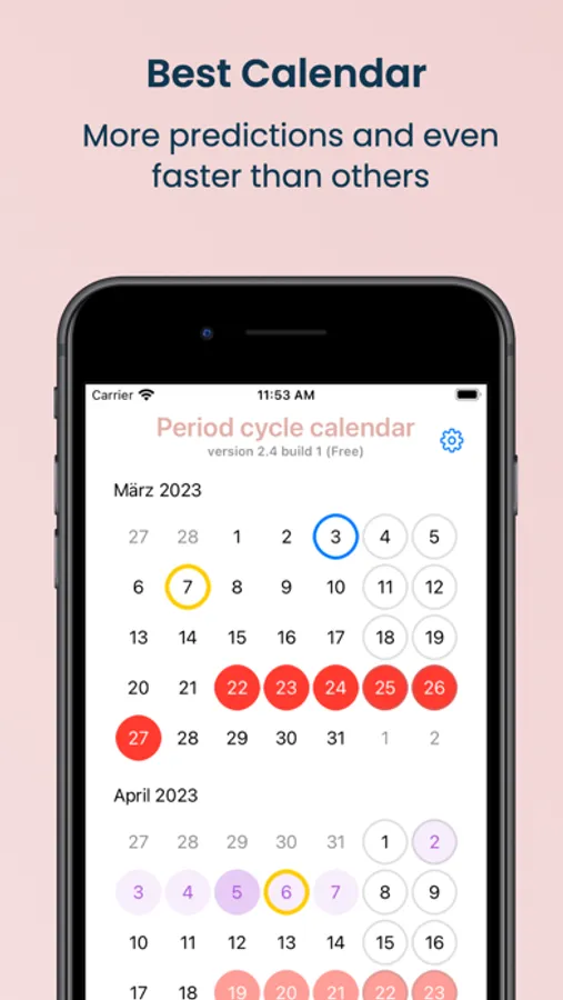 This app is designed to help you keep track of your cycle, so you can better understand your body and plan your activities around your menstrual cycle. With our app, you can easily track your period, store information about your menstrual cycle, and record any changes in your cycle. We also have a fertility window tracker, which will help you determine when you are the most fertile and when you are not. With our app, you can make informed decisions about your reproductive health and family planning. Our period prediction app is a powerful and simple app to track and predict menstrual cycles and ovulation dates. It makes it simple to track the daily mood and to read tips about fitness, health, food depending on the current cycle moment. Set the date of the last period and get reminders on special days, like fertile phases or next menstrual cycle start. Get predictions and full moon correlations, and trace your mood balance index. The app is based on natural cycles, so it helps you to get in touch with your body. You can track menstrual cycle, fertile phases, mood and sleep, as well as the influences from outer world. It supports multiple languages: English, German, Spanish, French, Turkish and Hindi.