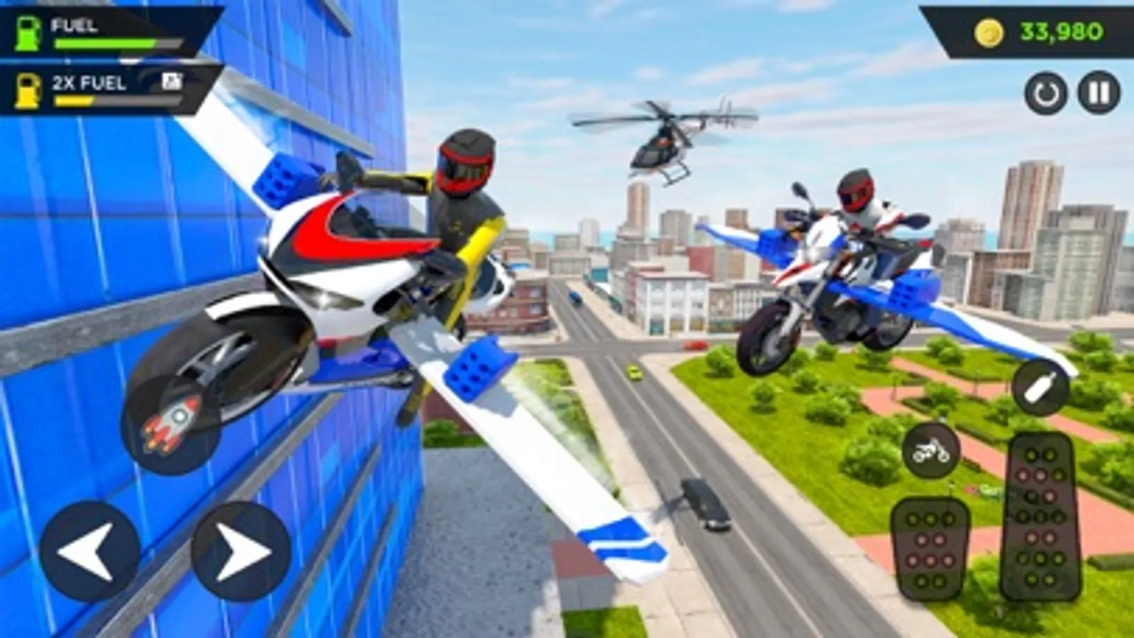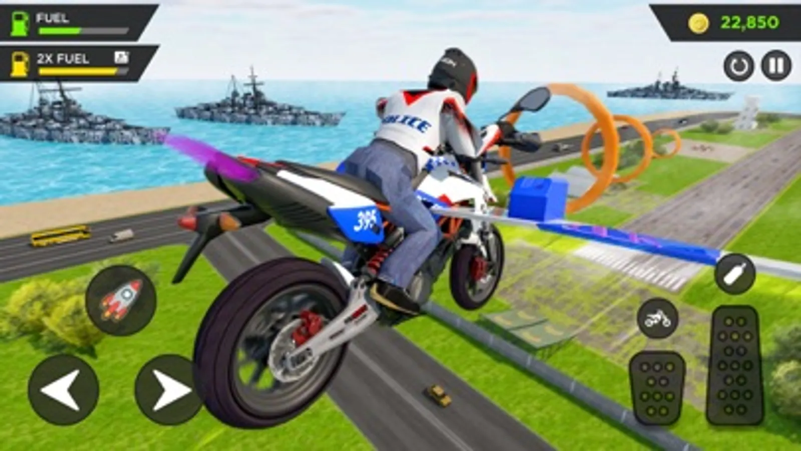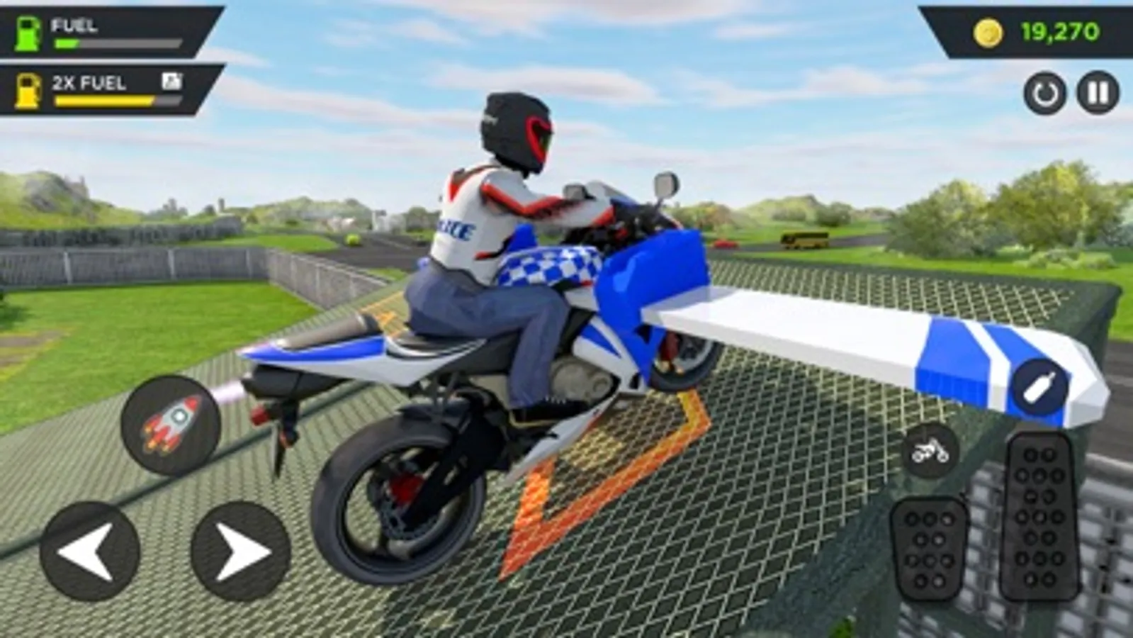 You will enjoy a thrilled and action-packed police bike flying simulator game, where you can flying your sports bike and get in to the different missions of police officer who drive flying bike.