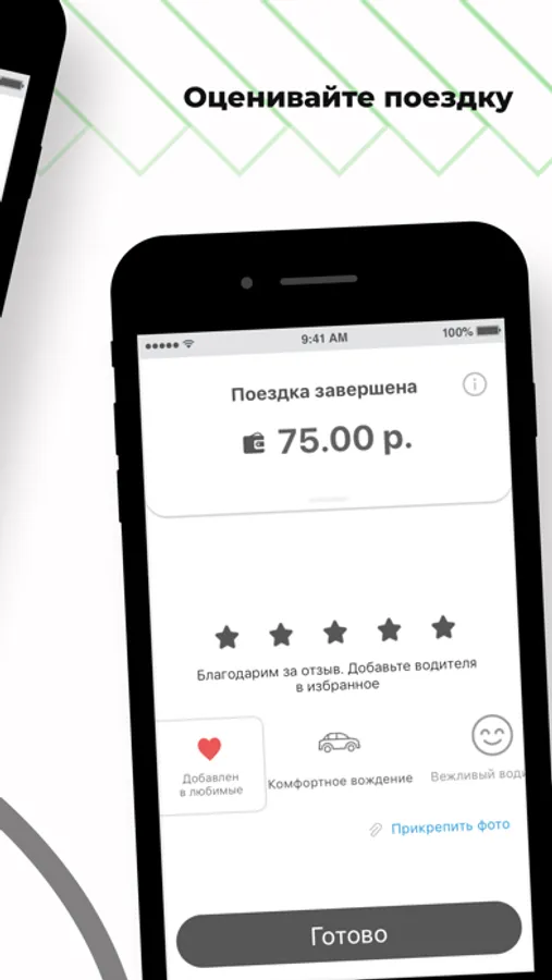 + Оцените поездку и водителя