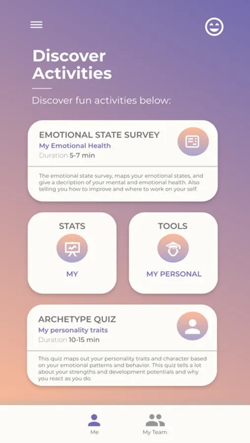 You can also use the Archetype quiz, which maps your emotional primary behavior and identity. Both surveys are dynamic, which is why this is an app that you continuously use to track yourself, develop yourself and work with yourself.