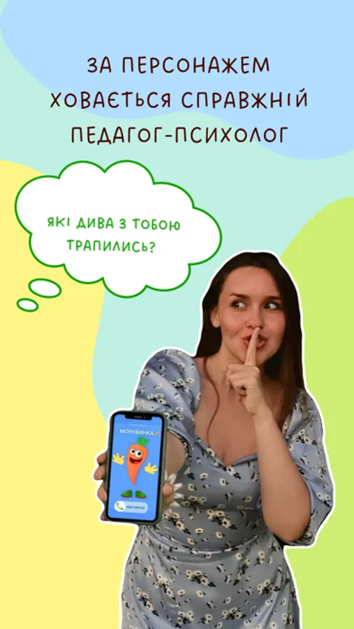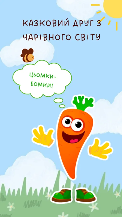 Чарівна Морквинка із задоволенням стане справжнім другом для малечі. Під час відеозустрічей у застосунку разом вони поринуть у казковий світ, будуть спілкуватися, навчатися, грати у розвиваючі ігри та жартувати!