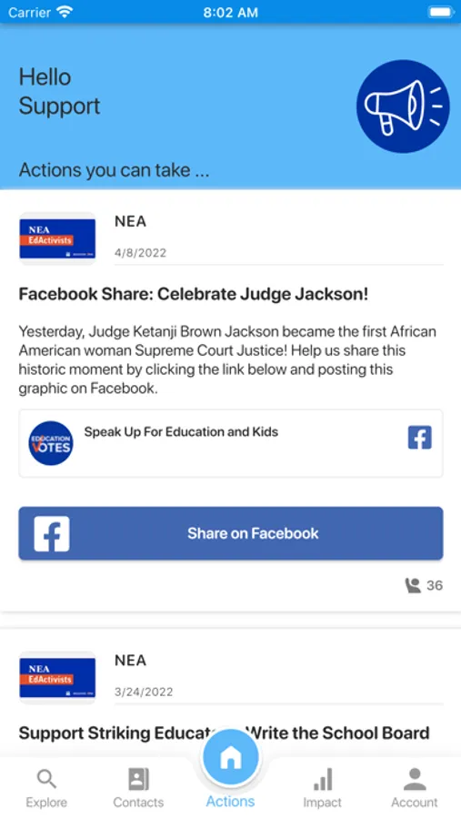 EdActivist is NEA’s digital campaign headquarters, providing a one-stop-shop to mobilize your network to support public schools and students by advocating for pro-public education candidates and causes. People tend to take advice from people they know and trust—that’s why we created EdActivist, so you can even engage your friends and colleagues via social media, text, and email, quickly and easily from one app.