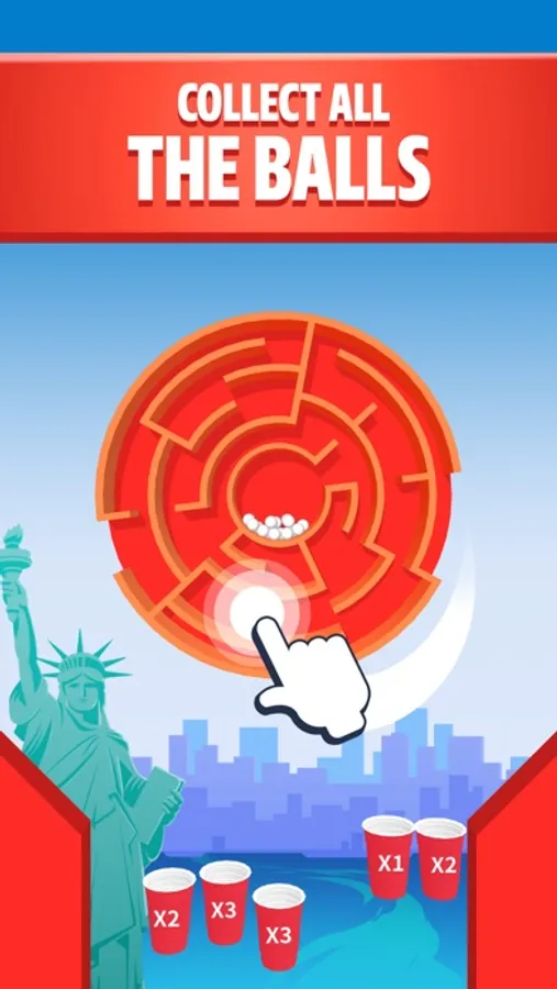 Rotate the maze and find a way to let all the balls out! Gather them in the red cups and move to the next level.