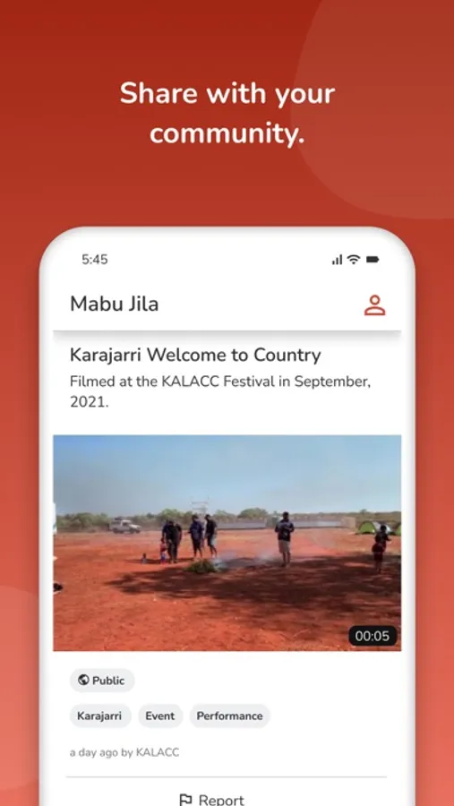 Mabu Jila is an app for sharing and securing short videos of traditional Kimberley culture. It allows you to make your profile, explore your culture, and safely upload videos. All videos are uploaded with cultural protocols, so that videos are stored the right way and can only be seen by the right people.