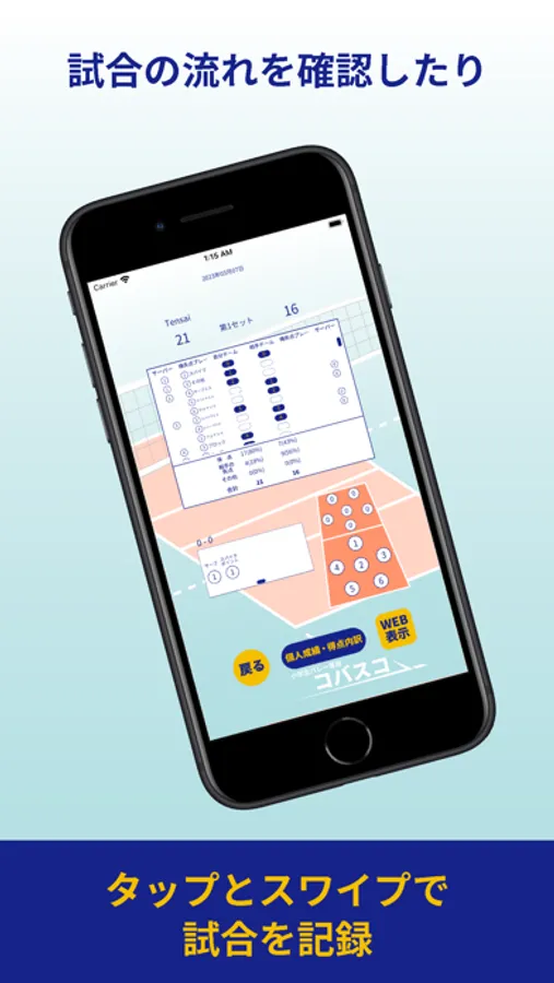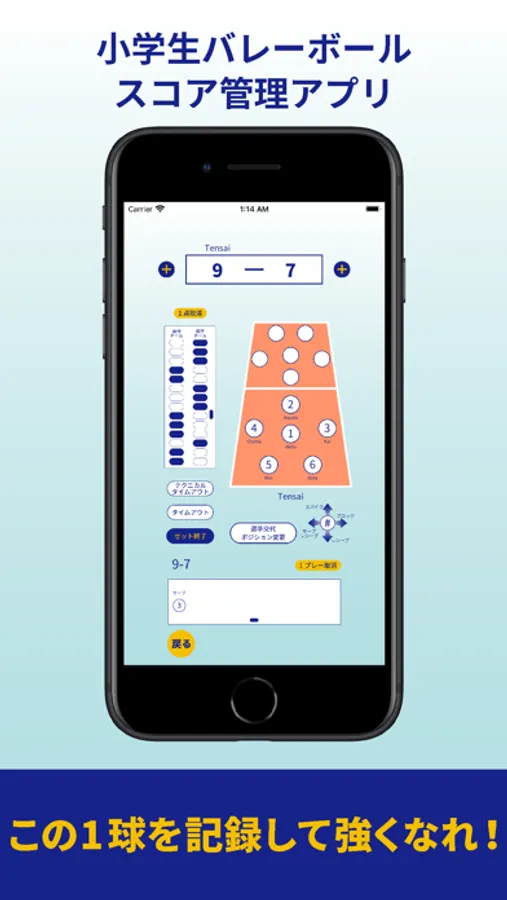 サーブ順やフォーメーションを登録して、試合を記録します。