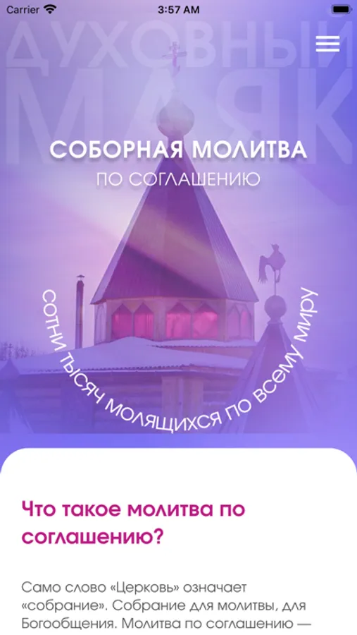 Запустилось обновленное мобильное приложение Духовного маяка «Молитва по соглашению», где как и всегда можно найти всю полезную информацию о молитве по соглашению, подать имена на поминовение, увидеть карту сомолитвенников, задать интересующий вопрос, следить за прямыми эфирами, получать уведомления и многое-многое другое.