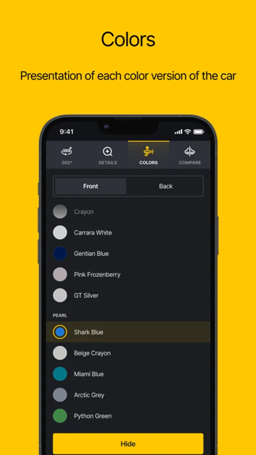 The visual comparison of engines is one of its kind solution. Using such tools as: Spectrum Effect, Face to Face, Photo Slider, or Tri-view, the application’s user is able to compare directly two selected cars, their bodies, differences in dimensions, etc. He or she can also compare the interiors of the cars using both 360 footage and photo footage and compare selected details. Phantom effect is a solution to superimpose bodies of two selected cars. By controlling the transparency of the photo and rotating the vehicles, you can check to what extent their bodies, basic dimensions (height, length and width, as well as wheelbase) differ. Face to Face is a solution that enables you to put two cars side by side, rotate them and compare their shapes, body embossing, construction of the front and rear parts, construction of lamps that are a kind of "jewelry" of modern cars. Photo Slider, like the Phantom Effect, allows you to superimpose cars, except that in this case you cannot control the transparency of the image, but you can only move the slider bar. With this tool, you can see the extent, to which the two selected cars differ. Tri-view is a quick look at three views of the selected cars with the use of the Spectrum Effect. The list of details that can be compared depends on whether the body view or the interior view function has been selected. You can compare the details indicated by the displayed dots. Currently, CarShow360 includes the presentation of more than 1,000 cars, most of which are vehicles currently available on the market. In addition, the presentations include selected classic cars and motorcycles. The application is being developed on an ongoing basis, with more cars joining the list of presentations.