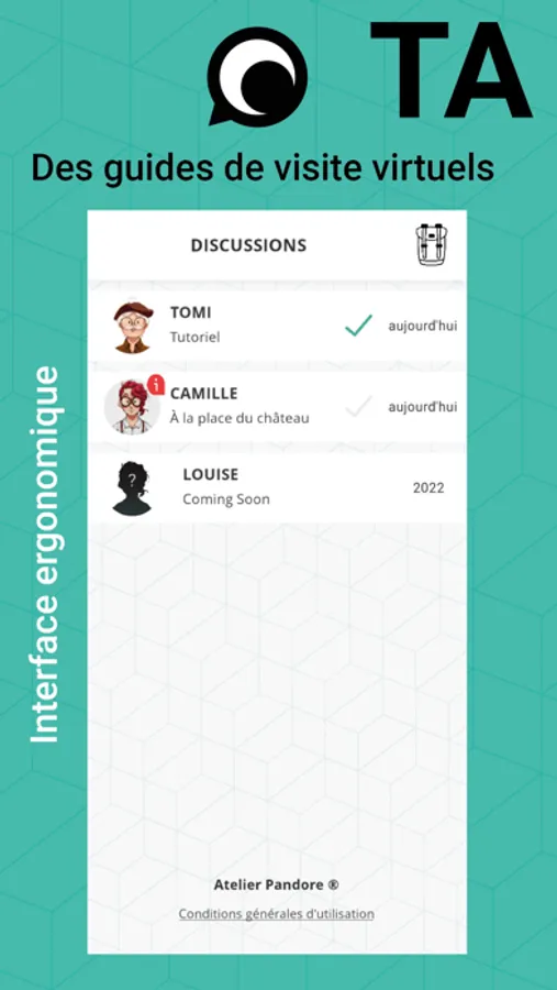 Je suis Tomi, le chef de file de l’agence TAVU. Le responsable du truc. Enfin bon, le boss final quoi. Mon job, comme celui des autres personnages de l’application, c’est de te guider dans ta visite d’une ville ou d’un village. Notre idée c’est que l’histoire, l’architecture ou le patrimoine ça n’a rien de compliqué : on est d’accord ?