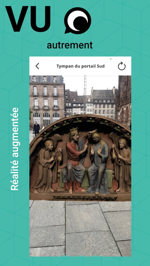 Comme, en vrai, on est quand même des robots, notre programme informatique est sans cesse en évolution et on intègre au fur et à mesure de nouvelles techniques pour te faire voir ce que la ville te réserve de mieux. Tu vois par exemple là, en 2022, on vient d’intégrer un module de réalité augmentée. C’est un outil qui va nous permettre de te montrer en 3D et dans la réalité des trucs qui n’existent plus dans la vraie vie.
