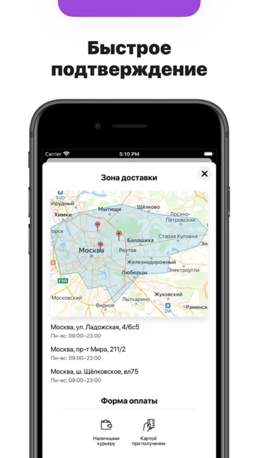 — Быстрый заказ с мгновенным подтверждением через приложение.