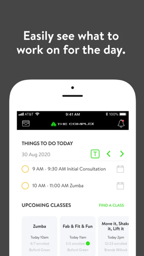 With The Complex Fitness App. You can access your personal profile. Update information, billing and schedule services.