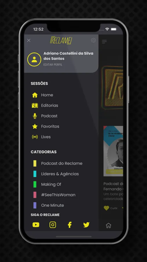Aplicativo de notícias, matérias e conteúdos exclusivos do programa Reclame.