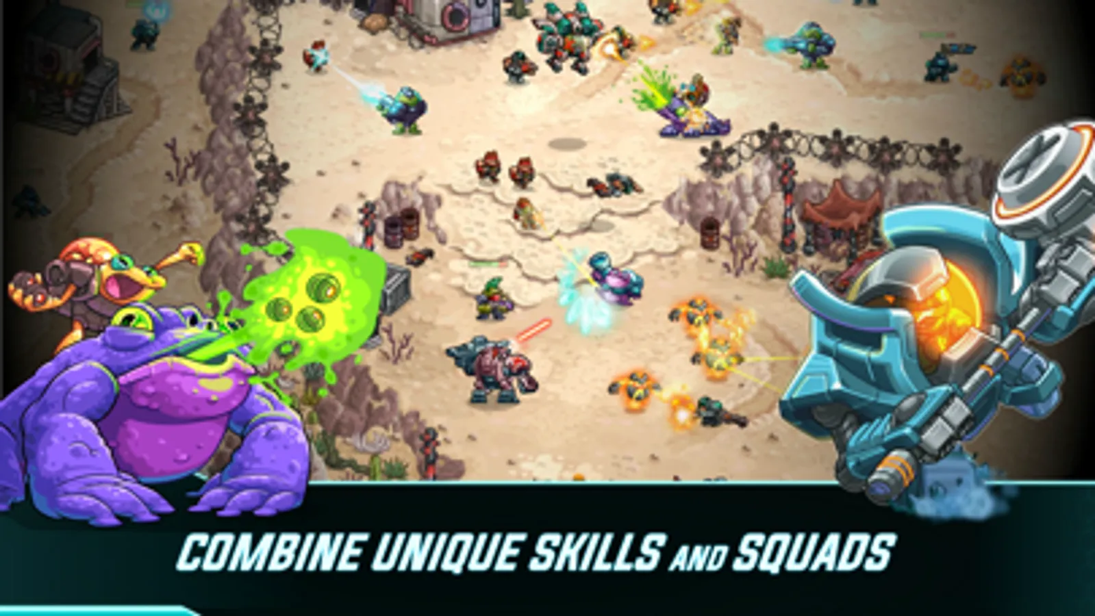Now you can combine your squad and take advantage of each Unit’s unique fighting skills: from rangers to snipers, mechas, missile launchers, or fearsome alien warrior clans.