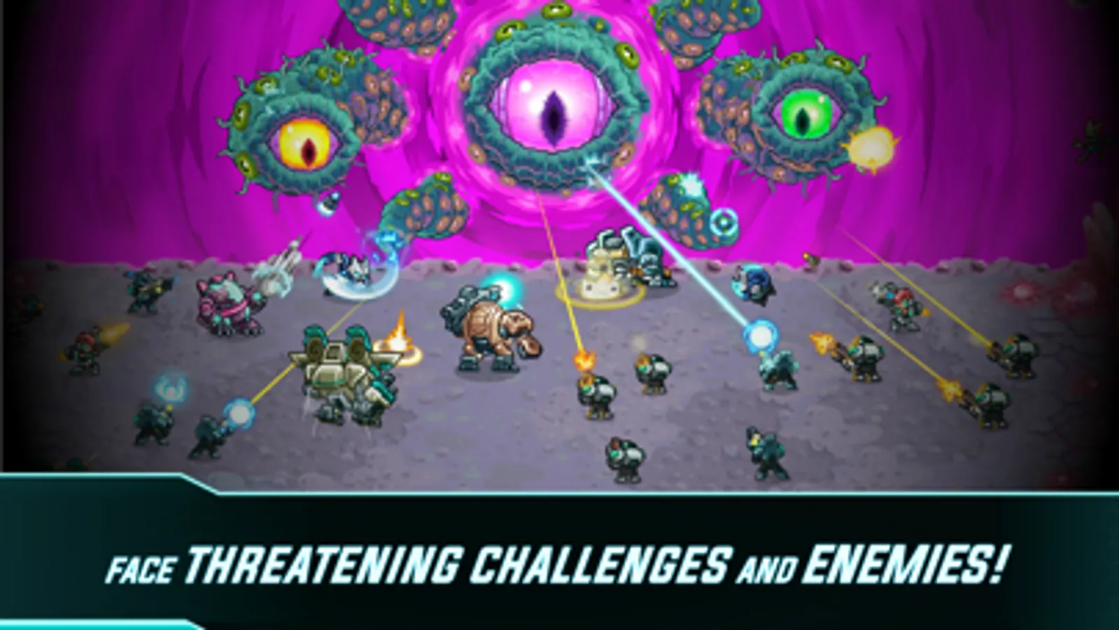 - 40 Upgrades to improve your strategy and empower your units with defense drones, napalm rockets, ricocheting blasts and much more.