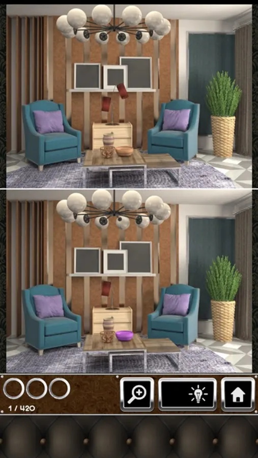 The differences won’t be repeated and all photos will have unique differences with unique photos making the challenge more thrilling and intensely testing your detective skills. All photos in this photo hunt, in this difference game, to spot the differences are of an interior setting, giving each challenge a detective theme.