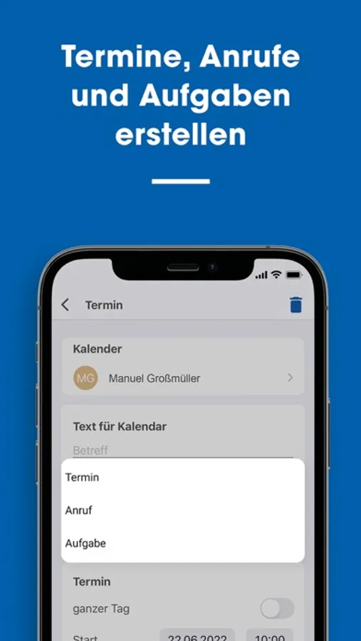 + Termine, Anrufe und Aufgaben erstellen