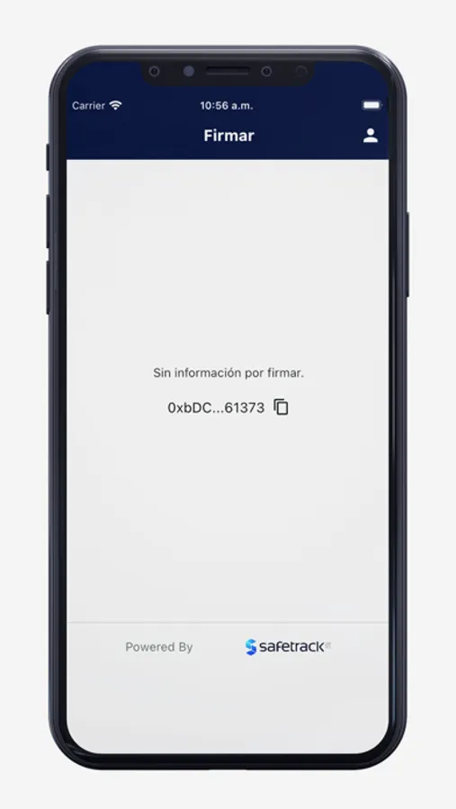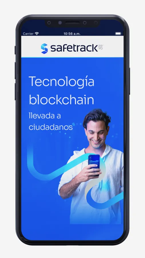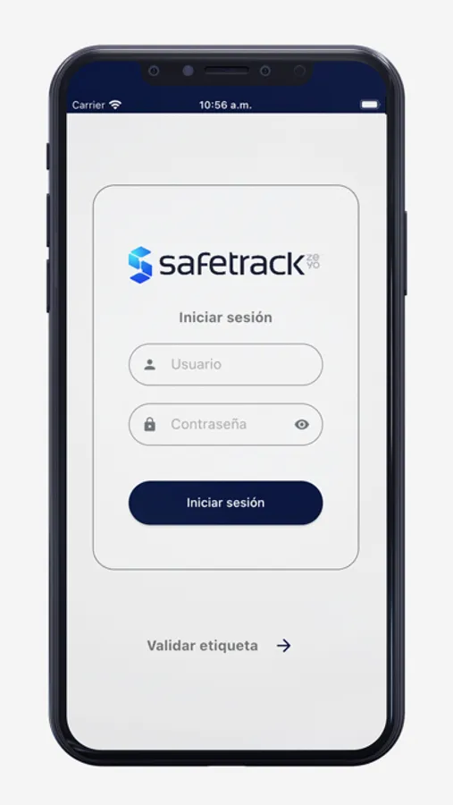 Safetrack App permite validar el estado de una etiqueta (marca única), ingresando el código y así conocer el si está activa/desactiva. En la pantalla principal sale la opción "Verificar etiqueta".