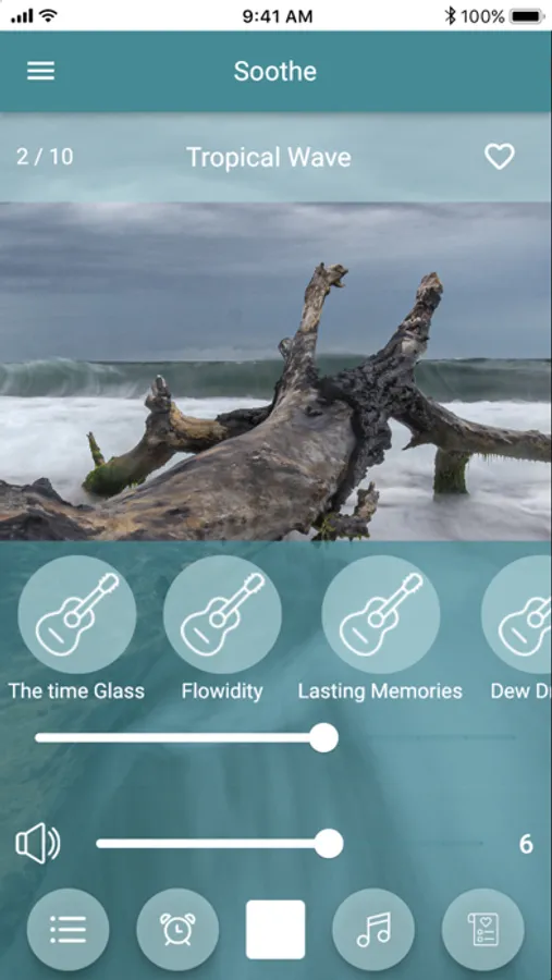 - 10 different soothing nature tracks (over 1 hour per track!)