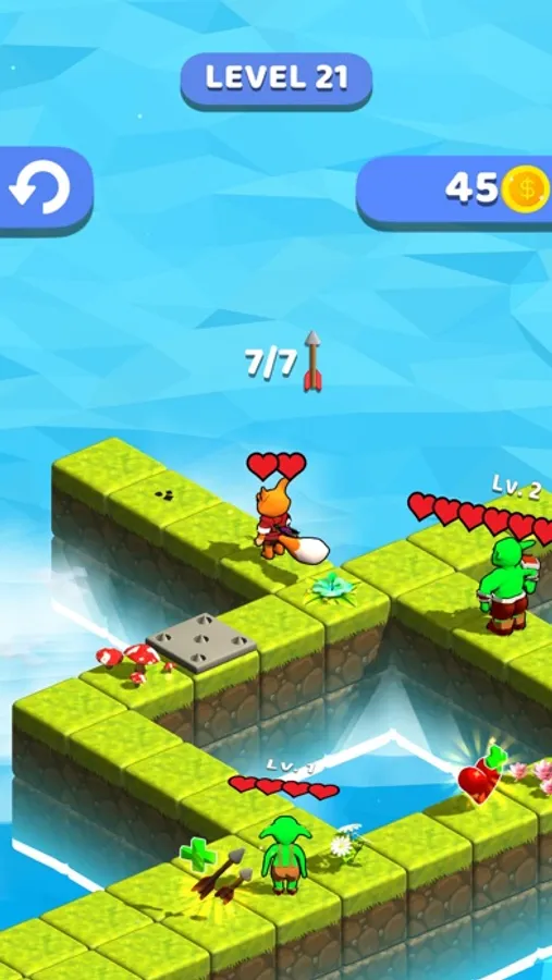 Little Foxy is out for an adventure. In this adventure, she will face monsters like slimes, skeletons and goblins, and she has a limited number of arrows. You should help Foxy determine if she should go left or right. You must upgrade your bow and arrows to go further at each attempt. Don't leave Foxy alone in this adventure!