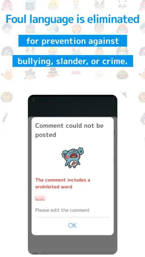 To enhance safety, foul language is detected so that words that may be considered bullying, slander, and crime cannot be used. We have devised ways to prevent cyber bullying, which has become a problem among elementary school students. Inappropriate posts are prevented through automatic detection by both AI and human eyes.