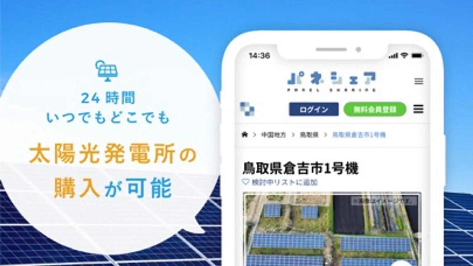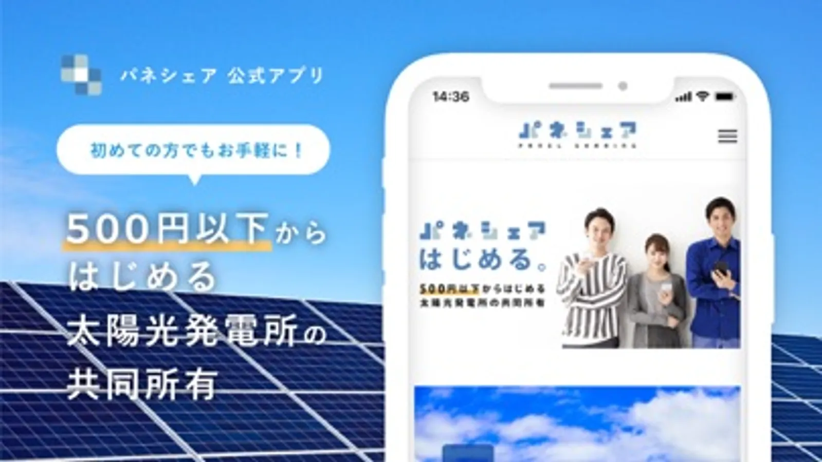 パネシェアは、500円以下から太陽光発電所をシェア(共同所有)する事が出来るサービスです。