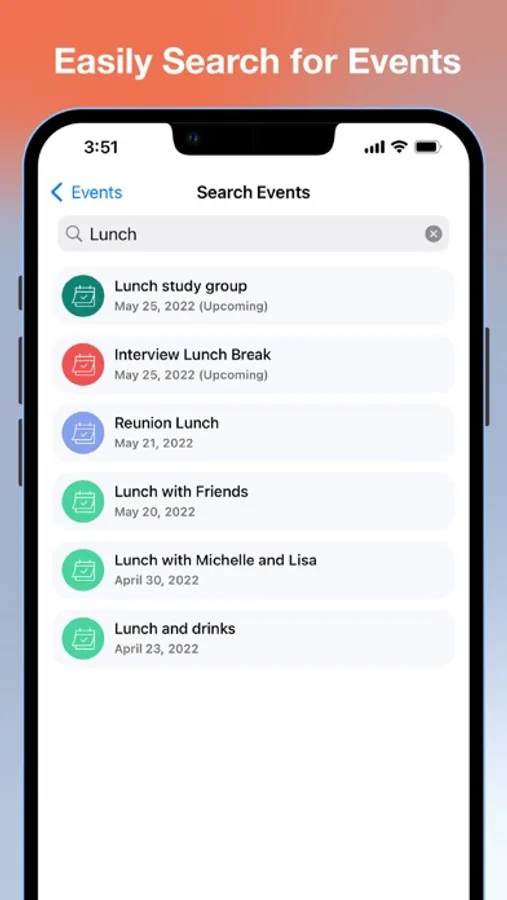 Stay on top of your tasks and accomplish every goal! Easily search for events and tasks.