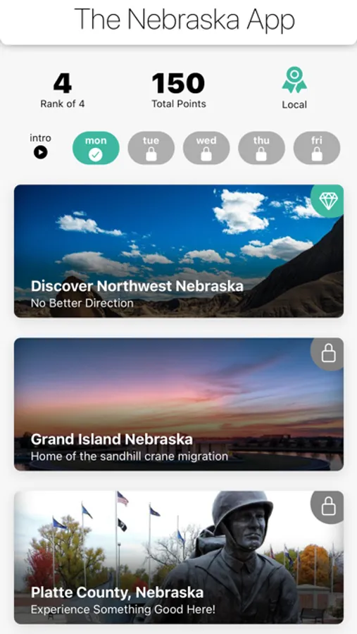 Earn points, explore Nebraska, discover unique things to do, and unlock cities.