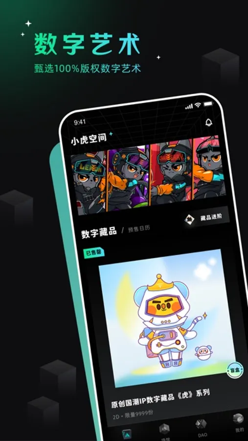 【小虎空间】希望为大家提供更有趣、更好、更值得收藏的数字藏品,将更多传统文化、经典艺术、潮流时尚以数字藏品的形式带给大家,让更多用户了解艺术,传播艺术,并藏而有得。同时平台特有的“限量发行、区块链确权、独一无二”等方式,也让藏品具备了更高、更稀缺性的收藏及欣赏价值。