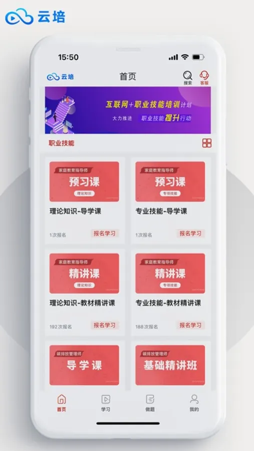 云培职业培训平台,专注于通用素质、生活服务、健康服务等各类技能培训在线培训平台,为机构赋能,为企业服务,用大数据构建全流程、可量化的职业培训高效服务体系。