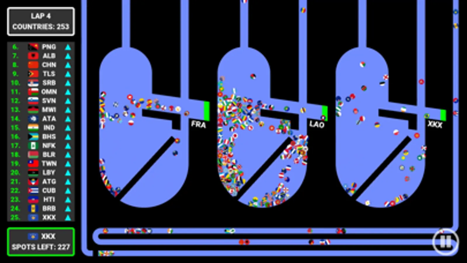 The remake of my World Marble Race series. Select a country and watch it race against other countries, will your marble survive and win the gold medal?