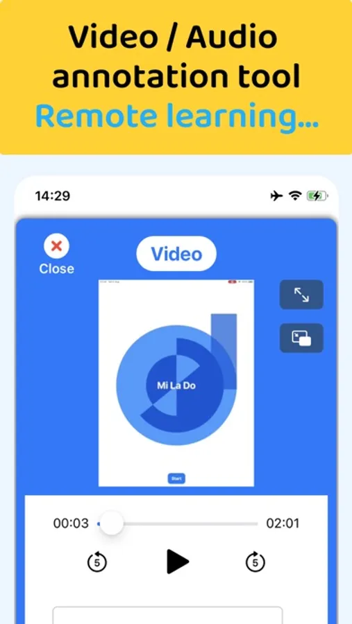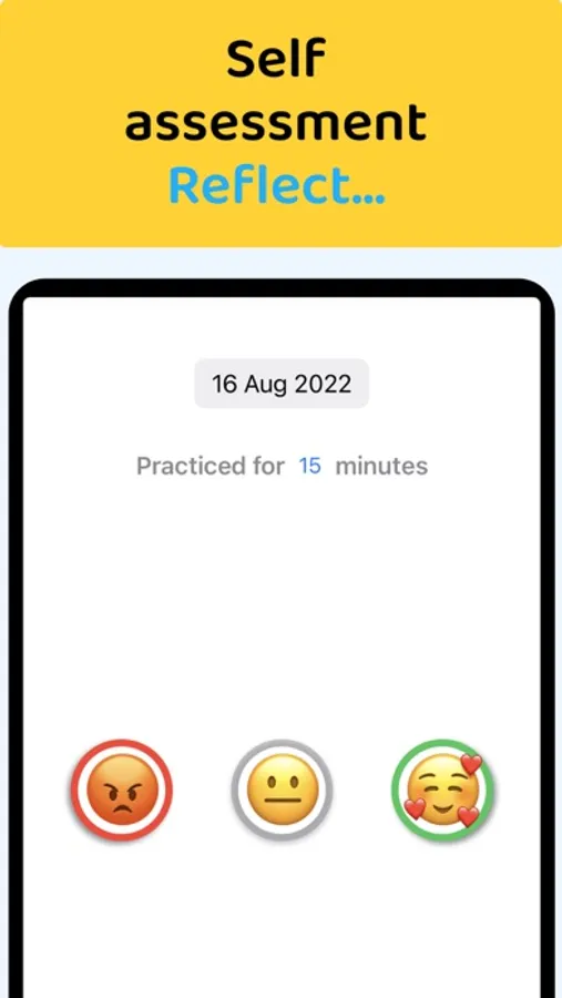 During practice, the screen is blacked out. It's just you and the instrument. No distractions. However some essential practice information remains accessible (instructions, a player for any backing tracks attached, etc)