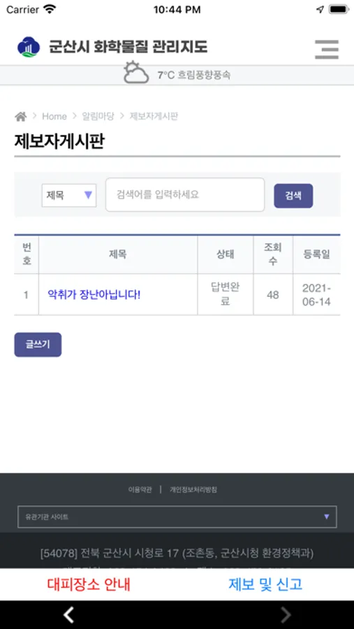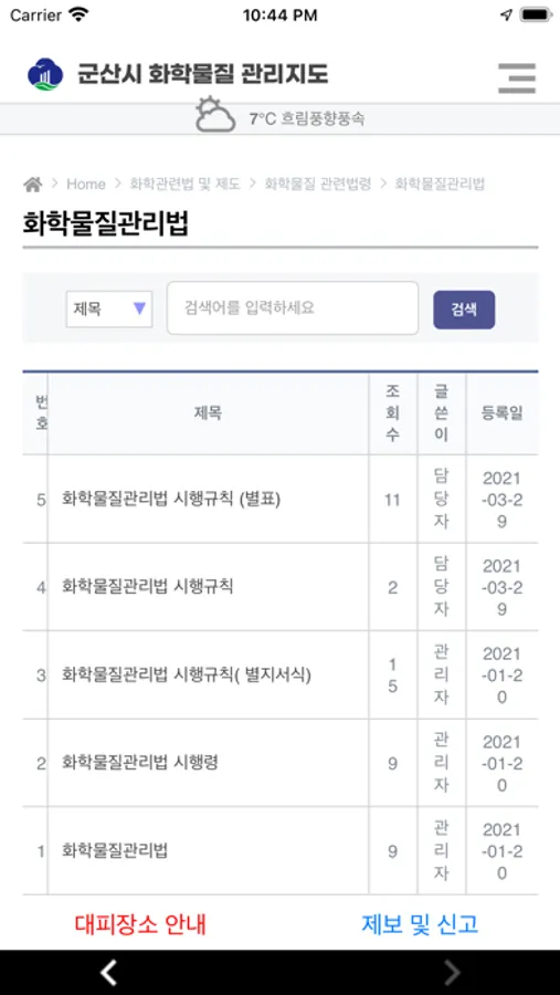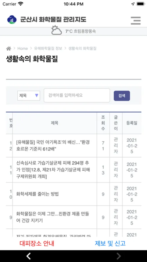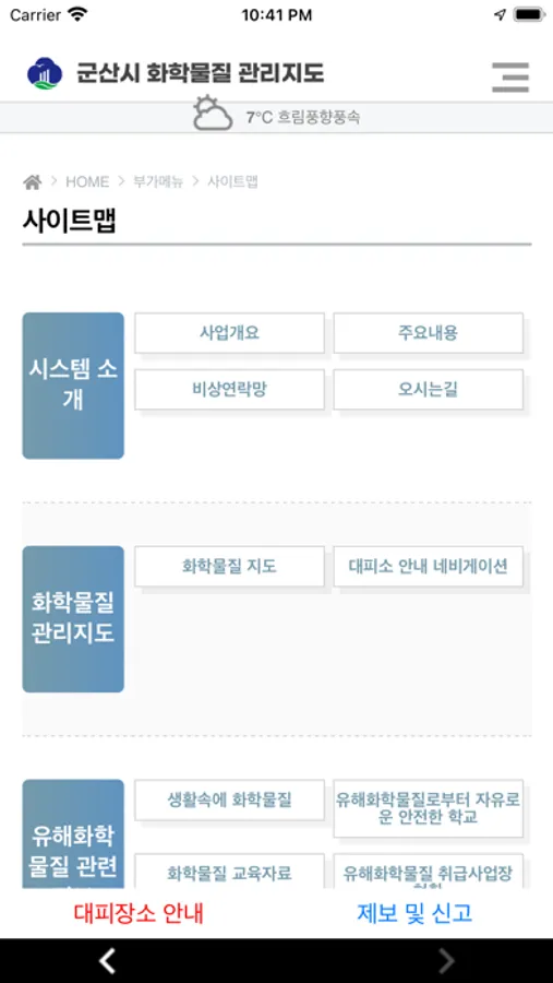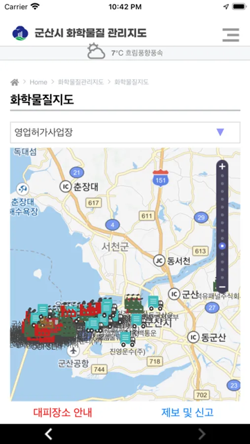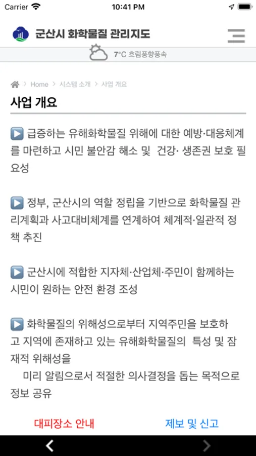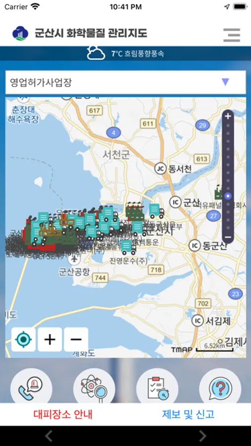 화학물질의 위해성으로부터 지역주민을 보호하고 자신들이 거주하고 있는 지역 환경에 존재하고 있는 유해화학물질 특성 및 잠재적 위해성을 미리 알림으로서 의사결정을 하여 적절한 대응을 하도록 돕는 목적으로 군산시 화학물질 관리앱이 개발되었습니다.