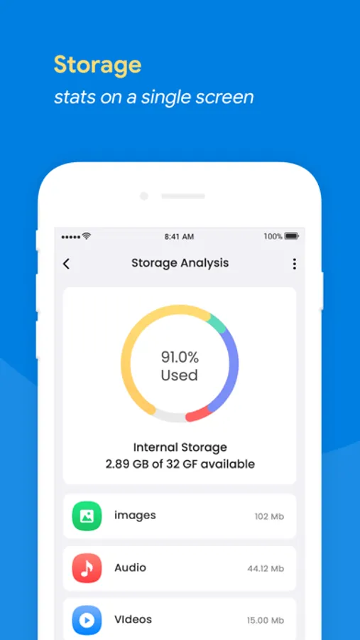 My Files can perform an analysis of the storage usage of the files stored on your device.