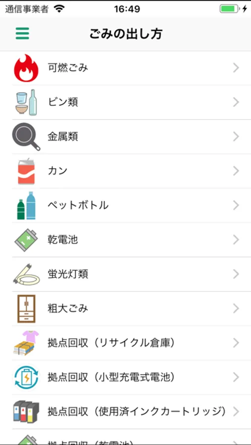 品目毎にごみの捨て方を確認できます。また、検索性の高い仕組みをつかっているため探しているモノを簡単に見つけることができます。